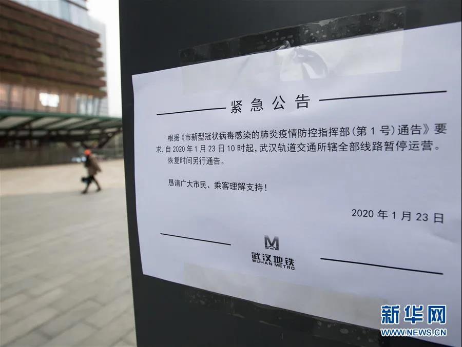 昨日,武漢市疫情防控指揮部決定,全市城市公交、地鐵、輪渡、長途客運暫停運營;無特殊原因,市民不要離開武漢,機場、火車站離漢通道暫時關閉。恢復時間另行通告。