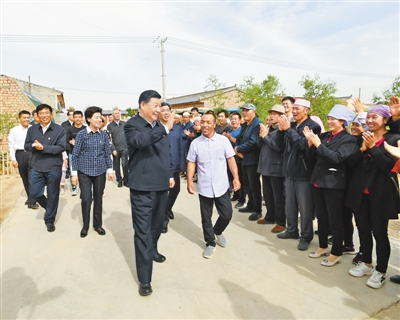 6月8日至10日,中共中央總書記、國家主席、中央軍委主席習近平在寧夏考察。這是6月8日下午,習近平在吳忠市紅寺堡區紅寺堡鎮弘德村看望移民搬遷群眾,向村民們揮手致意。 新華社記者 謝環馳攝
