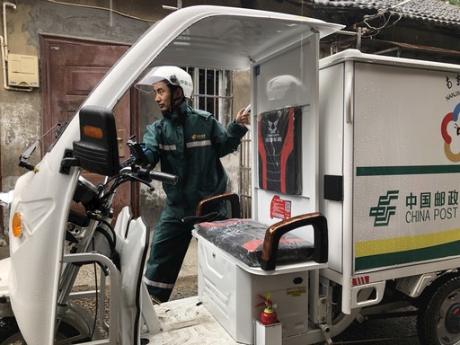 剛進梅雨季,6月15日一大早,江蘇省南京市連續發布雷暴黃色預警和雷雨黃色預警,持續的強降雨導致道路出現積水,路面濕滑、能見度低,更是給投遞員雨天戶外作業增加了難度和危險。面對惡劣天氣,江蘇省南京市郵政分公司2000余名“快遞小哥”一如既往堅守投遞一線,在確保自身安全的基礎上,不負客戶所托,確保百姓用郵。圖為六合區分公司雄州營投部投遞員陳桂俊在投遞到縣府街路段時遇到上坡推車前行。□任俊 攝影報道