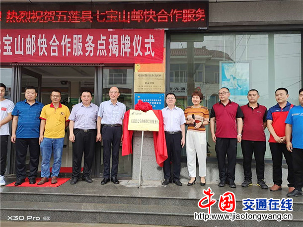 6月23日,日照市首個“郵快合作”服務點在五蓮七寶山揭牌成立。日照市郵政管理局局長馬守東、副局長范成瑤,日照市郵政分公司副總經理(主持工作)尤洪峰、副總經理李炳延,五蓮縣郵政分公司副總經理(主持工作)王健軍,五蓮縣百世、圓通等快遞企業主要負責人出席揭牌儀式。