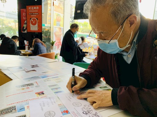 一位集郵愛好者參與成都郵政舉辦的抗疫明信片書寫活動。