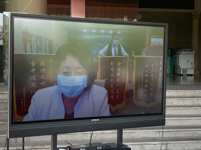 儀式上,廣州郵政與北京郵政通過(guò)現(xiàn)場(chǎng)電視大屏,進(jìn)行了遠(yuǎn)程網(wǎng)絡(luò)連線。“雖然天各一方,但視頻連接著你我。”北京郵政副總經(jīng)理王艷十分感動(dòng),她在視頻中展示了三面錦旗,向廣州表示,“疫情無(wú)情人有情,雪中送碳是親人!”