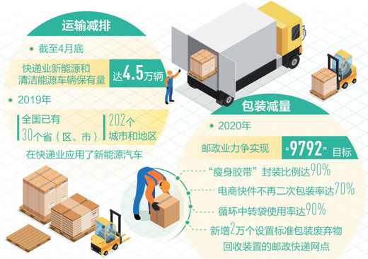 今年,國家郵政局提出“9792”工程,即到今年年底力爭實現“瘦身膠帶”封裝比例達90%,電商快件不再二次包裝率達70%,循環中轉袋使用率達90%,新增2萬個設置標準包裝廢棄物回收裝置的郵政快遞網點。