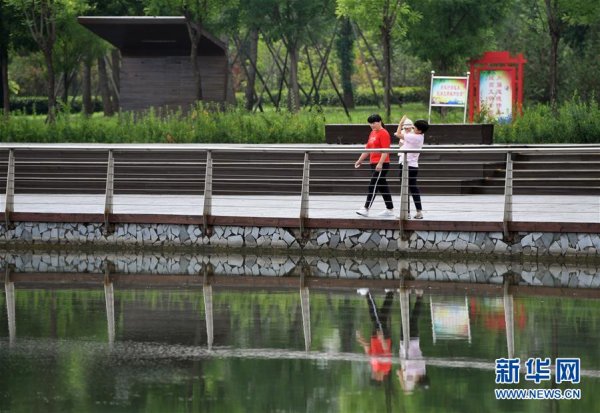 市民在許昌中央公園游玩(6月18日攝)。 新華社記者 李嘉南 攝