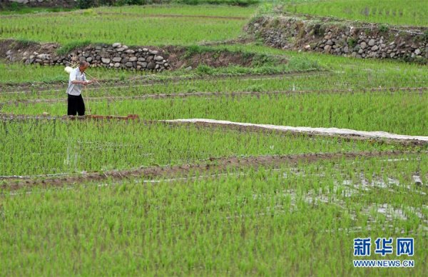 一名村民在田鋪大塆的稻田中勞作(6月12日攝)。新華社記者 李嘉南 攝