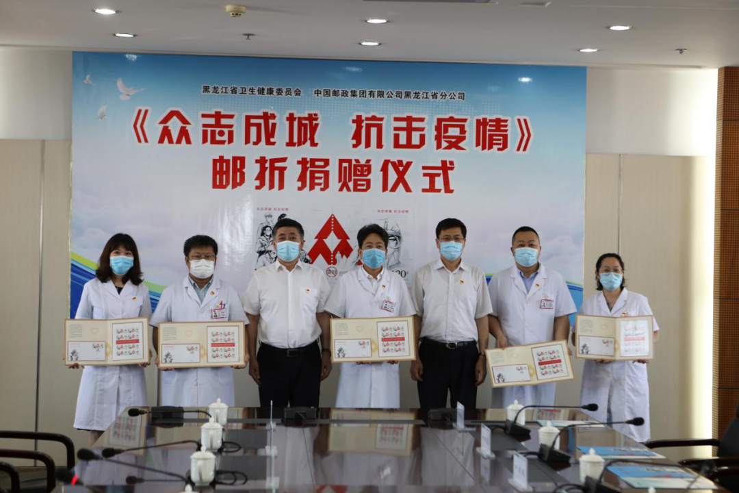 7月1日,黑龍江省郵政分公司與黑龍江省衛健委共同舉辦了《眾志成城 抗擊疫情》郵折捐贈儀式。此次捐贈活動,黑龍江省郵政分公司代表中國郵政集團向省衛健委捐贈郵折1654套(內含大版票、首日封),贈送給支援湖北、黑龍江省抗擊疫情一線的主要醫務人員、疾控人員。
