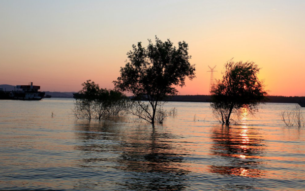 7月14日17時,水位22.39米,超警戒水位3.39米。連日的強降雨導致排水主干渠道無法正常外排,內澇嚴重,隨時可能倒灌。于是,我們早早來到定點扶貧村新池新華村與解放軍們進行圍堤泄洪,并走訪了定點扶貧對象,給他們帶去生活物資,送去關懷。從老鄉家中出門時,夕陽的余暉灑在水面上,發出金燦燦的光影,我想明天定是個好天氣,這場抗洪搶險戰役我們也一定會勝利。