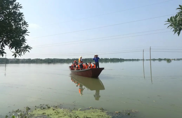 14日8:30,在臨時渡口,所有群眾排隊穿戴救生衣,在我們的指導下有序上船。“洪水無情,郵政有情,你們真是好樣的!”“感謝你們為我們保駕護航!”鄉親們對此很是支持,都說郵政干的是服務百姓的好事,我的心也暖暖的。看著滿載保障受災群眾生活物資的“郵船”,我感覺它似乎變得輕盈起來,駛過洪水漫過的蔬菜棚頂、劃過沒頂的樹冠,在洪流中破浪前行,全速前進。