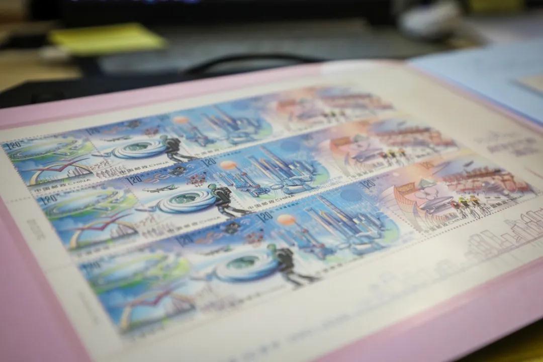 據了解,該套郵票采用高精度調頻加網技術印制,運用冷燙、全彩熒光工藝對郵票進行渲染,使郵票圖案層次更加分明,在陽光下冷燙圖文反射出七彩的光澤感,紫光燈下郵票呈現出絢麗的全彩熒光效果,生動演繹了上海浦東30年來的發展成就。