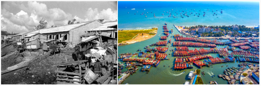 僑港今昔對比。 北海市銀海區(qū)僑港鎮(zhèn)人民政府供圖