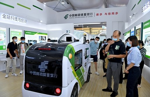 郵儲銀行智能新零售體驗車吸引了眾多觀眾。□中國郵政報記者 朱正義 攝