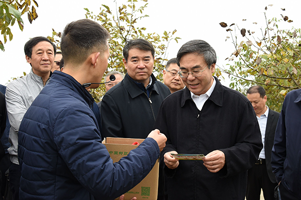 圖為2019年10月17日,劉愛力一行來到陜西商洛進行實地調研,了解集團公司定點扶貧項目的進展情況。