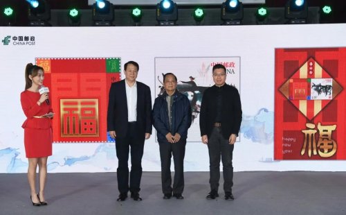 在2021辛丑年即將到來之際,今天(11月5日),中國郵政集團有限公司在中國郵政郵票博物館舉辦2021年賀年有獎明信片、賀年專用郵票發布會,向社會發布以“生肖牛”為主題的普通明信片、極限明信片、祝福卡及2021年賀年專用郵票。本次發布會主題為心里“郵”你、為愛發光。中國郵政集團有限公司黨組成員、副總經理王儉,著名藝術家韓美林,郵票印制局設計總監王虎鳴,清華大學美術學院博士生導師陳楠教授,南開大學東方藝術系副教授張旺,中國工藝美術協會會員武世寧,著名繪本畫家景紹宗,明信片文化創意設計大賽獲獎者段雅婕、潘振磊及中國郵政集團有限公司相關部門負責同志出席。王儉發表致辭,并與韓美林及與會嘉賓分別為賀年專用郵票小全張及明信片揭幕,與會嘉賓還分享了設計理念。