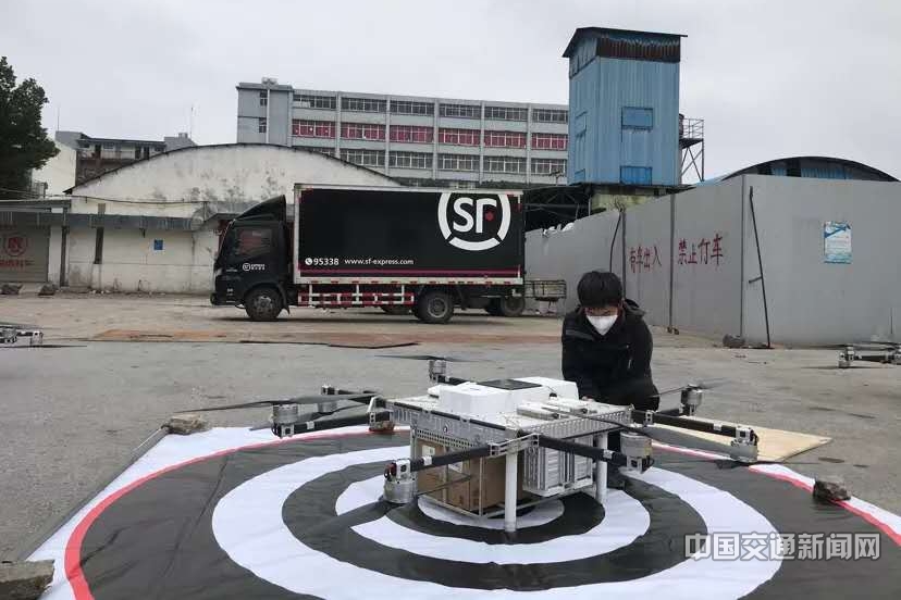 疫情防控期間使用無(wú)人機(jī)為武漢金銀潭醫(yī)院運(yùn)送緊急防疫物資。