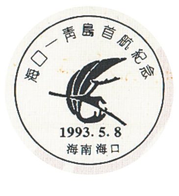 1993年5月8日,海南省航空公司開通了往返于海口和青島的直達航線,航程2500公里,每周六飛行一班。這條航線的開通對海南經(jīng)濟騰飛起到了積極的作用,進一步促進了兩市之間的政治、經(jīng)濟和文化的交流。海口市郵票公司聯(lián)合海南省航空公司發(fā)行了首航紀念封。