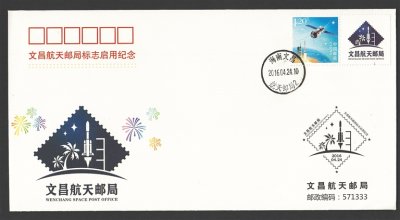 2016年發(fā)行的《文昌航天郵局標志啟用紀念封》。