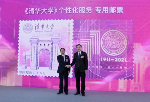 在清華大學(xué)110周年校慶之際,4月24日,由清華大學(xué)、中國郵政集團(tuán)有限公司主辦的《清華大學(xué)》個性化服務(wù)專用郵票首發(fā)儀式在清華大學(xué)藝術(shù)博物館舉行。清華大學(xué)黨委副書記向波濤、中國郵政集團(tuán)有限公司副總經(jīng)理溫少祺共同為郵票揭幕。溫少祺將001號整版郵票交校方永久珍藏。首發(fā)儀式同步發(fā)布了個性化郵票首日封及清華大學(xué)110周年校慶系列郵品。