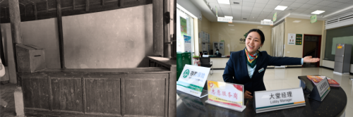 跨過高高的門檻,走進湘鄂西省郵政總局舊址,看到木質(zhì)的柜臺上,一個陳舊的木質(zhì)信箱靜靜地立在一旁,穿越了那段歷史,展現(xiàn)在我們面前。我們仿佛看到郵政前輩們在柜臺前認真地工作。在現(xiàn)代郵政寬敞明亮的營業(yè)廳內(nèi),拉開透明的玻璃門,大堂經(jīng)理微笑著熱情地迎來送往,堅守著人民郵政為人民的服務(wù)宗旨。