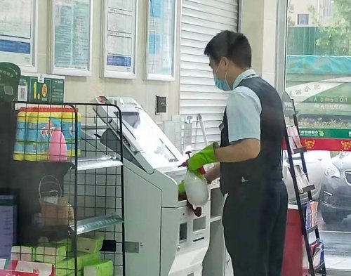 鲅魚圈區分公司堅決執行進出人員測溫登記、工作場地每隔兩小時消殺、佩戴口罩和手套上崗等防疫要求,確保員工生命安全。各營業場所和生產場地的醒目位置張貼警示標語,提示客戶務必佩戴口罩,掃碼、測溫、登記后方可進入,確保客戶用郵安全。