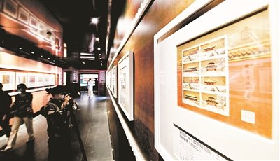 第二單元“美輪美奐”展現(xiàn)紫禁城主體建筑群,輔以郵票設(shè)計(jì)原稿、雕刻稿、古建影像,再現(xiàn)紫禁城建筑魅力。