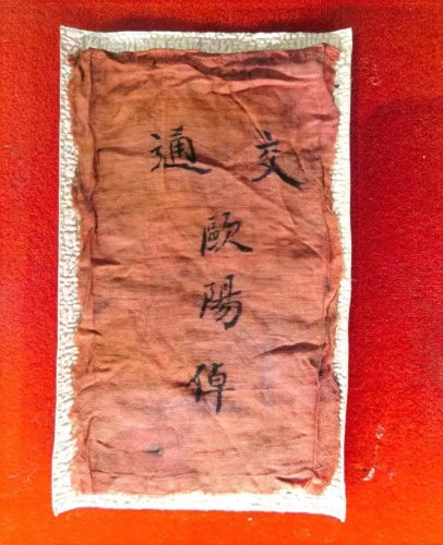 1978年,歐陽倬離開人世,后來他的親戚在打掃房子的時候在墻洞里發現了兩個油布包,打開一看,就是兩個交通證。一份白棉布的,是當時通往“白區”的交通證;還有另外一份,就是現存于井岡山革命博物館的紅色交通證。