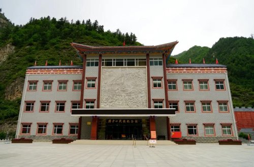 沿著迭部的山路逶迤前行,只見道路兩旁紅旗招展,一個(gè)個(gè)五角星掛在樹上隨風(fēng)搖曳,紅色的民宅依山而建,墻面上刻畫著紅軍故事,紅房碧草黛山在藍(lán)天白云的映襯下甚是吸睛,碩大的“紅色臘子口”標(biāo)語,無不提醒著我們,臘子口近了更近了。