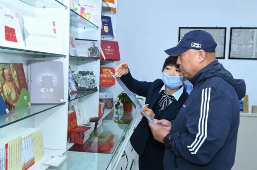 來到哈達鋪紅軍長征紀念館正門旁的哈達鋪紅色郵局,展柜上陳列的物品讓人挑花了眼。不僅有哈達鋪紀念明信片、大公報、黨史黨情圖書等,還有宕昌縣本地特產中藥材、點心、香菇醬等產品。每天都有上百名游客到此,對關于長征題材的郵票、明信片和首日封等郵品產生了濃濃的興趣。一名來自內蒙古的游客一進來就被展柜上的明信片吸引得移不開眼,他選購了一枚明信片,高興地說道:“我要把明信片寄回去,留下這份珍貴的哈達鋪記憶。”與此同時,主題郵局內一場線上直播活動正在如火如荼地進行中。