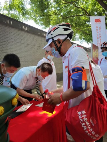 穿梭百年時光, 尋訪紅色印跡。6月11日,北京市西城區開展“初心之旅”紅色地圖發布儀式暨“騎尋紅色地標”新時代文明實踐活動西城區郵政分公司帶“戳”亮相。