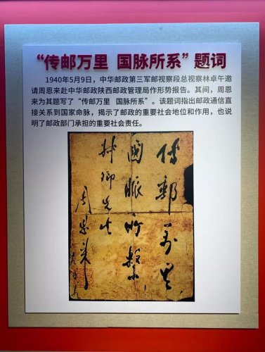 特別是在新民主主義革命時期,毛澤東題詞“人民郵電”,周恩來題詞“傳郵萬里 國脈所系”等珍貴文物,充分反映了郵政在社會發展中的重要地位和作用,指出了郵政事業為人民服務的性質宗旨,明確了郵政人的初心使命。