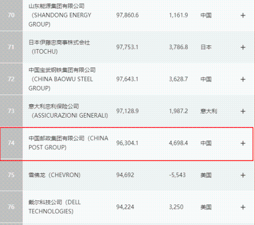 自2012年入圍世界500強以來,中國郵政保持持續(xù)快速健康發(fā)展,特別是從2018年以來,中國郵政排名實現(xiàn)大跨步躍升。