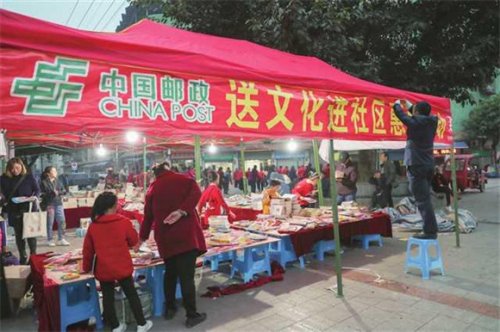 “服務全民閱讀,我們還把書店開到群眾身邊。”重慶郵政相關負責人介紹,一方面進商圈、進社區、進校園開展惠民書展,通過開展大力度的優惠購活動,開展教育、健康等文化講堂,引導群眾培養和強化閱讀習慣;另一方面通過推廣《參考消息》《中國國家地理》《讀者》《課堂內外》《家庭醫生》等精品報刊產品,塑造郵政暢銷報刊品牌,優化閱讀產品供給,為群眾提供文化惠民便民服務,傳遞精品閱讀價值。
