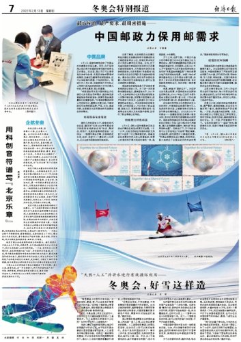 在弘揚(yáng)優(yōu)秀傳統(tǒng)文化和奧林匹克文化的同時(shí),中國郵政在郵票印制中引入先進(jìn)的科技手段,以嶄新的形式呈現(xiàn)北京冬奧會(huì)的精彩魅力。以《北京2022年冬奧會(huì)——競(jìng)賽場(chǎng)館》紀(jì)念郵票小型張為例,首次應(yīng)用菲涅爾透鏡微納光刻技術(shù)。國家速滑館建設(shè)所用的剩余玻璃材料經(jīng)過特殊工藝加工成50微米的可用顆粒,摻入紅色雕刻油墨中,制作成“冰絲帶特種油墨”。在紫光燈下,方寸間的場(chǎng)館可以立即呈現(xiàn)出“冰絲帶”霓虹璀璨、光影流轉(zhuǎn),場(chǎng)館周圍燈火輝煌的夜景。“冬奧會(huì)郵票郵品設(shè)計(jì)精美,很受歡迎,極大地滿足了各國運(yùn)動(dòng)員和來賓的需求。”國家郵政局局長(zhǎng)馬軍勝說。
