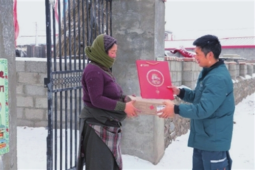 接過哈弄奪機(jī)送上的郵件和郵政新春福袋,楊措奶奶操著一口不熟練的漢語笑著對(duì)記者說:“這是孫女在網(wǎng)上買的年貨,這些天都是奪機(jī)在給我們送年貨,真的辛苦他呀!”