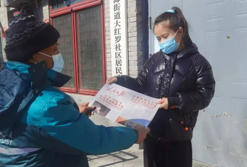 投遞員將最新兩會(huì)消息送達(dá)訂戶(hù)手中