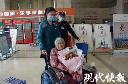 " 奶奶,我來接您了。"4 月 6 日上午 9 點,林曉芳將一大束鮮花送到老人手中,祝愿她早日康復。接著,他讓同行的丈夫在一旁照看老人,自己則在急診和住院部往返數次,幫老人辦理出院手續、拿藥、租輪椅。將老人扶上車,已是下午 1 點半,此時林曉芳才感覺自己又渴又餓,水都沒顧上喝一口。