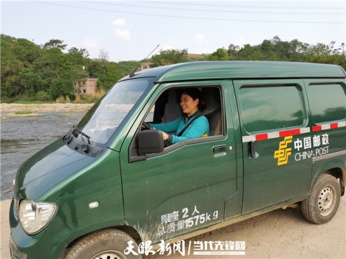 七點半,她準時來到縣郵政局投遞室,開始了一天的忙碌工作。有條不紊地整理好信件、報紙和包裹之后,再把它們一一搬上那輛綠色車身,并貼有“中國郵政”字樣的普通面包車,隨即啟動車子,向茫茫山區(qū)出發(fā)。