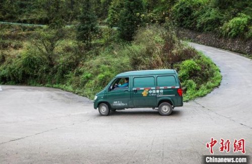 貴州省施秉縣白塘村的山路上,朱正琴駕車在投遞途中。 磨桂賓 攝
