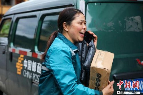 圖為朱正琴投送郵件途中?!∧ス鹳e 攝
