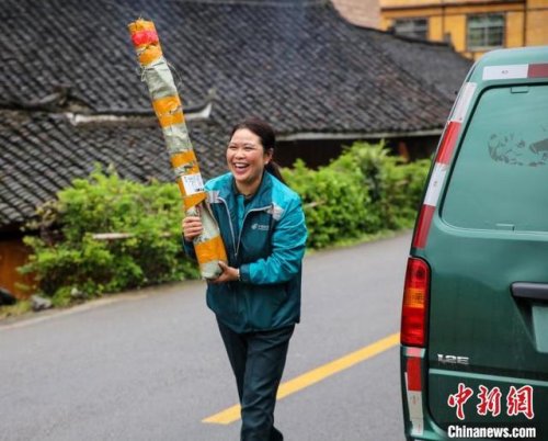 圖為朱正琴準備將郵件送往百姓家中。磨桂賓 攝