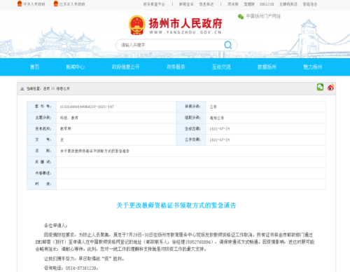 發(fā)布《關(guān)于更改教師資格證書