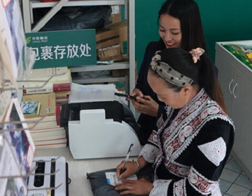 在化屋村村頭,這個去年剛剛掛牌的“微郵局”,承載著當地少數民族群眾的“大民生”。化屋村村民楊長坤言語中難掩興奮之情,“以前取快遞包裹,要坐鄉村公交去新仁街上一家一家快遞點取,有時候還要收1元、2元的‘取件費’,現在不僅‘一站式’取件,還沒有了‘取件費’,非常方便。”