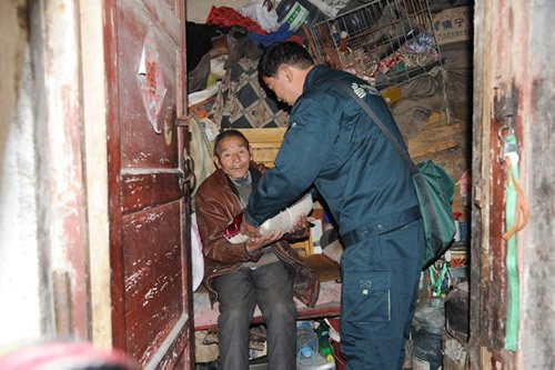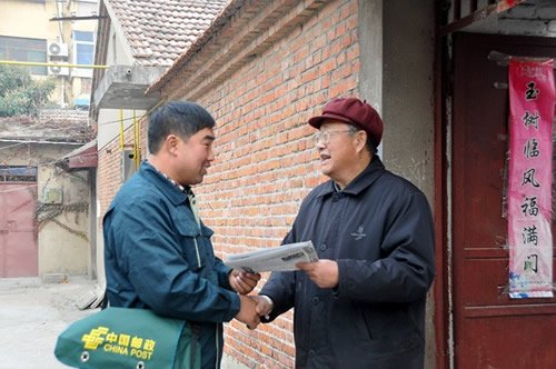 在訂戶眼中,張軍是個有名的“熱心腸”。在他負責的片區里,有一位早年喪偶的孤寡老人——邰連科,老人已經70余歲,靠低保和撿破爛為生,雖然他不是張軍的報刊訂戶,但是看到老人孤獨的身影,一種憐憫之心油然而生。于是他就成了老人的“義務志愿者”,每天路過老人家門口,他都要停下匆匆的腳步,看一看老人的生活狀況,還自掏腰包為老人買點水果,帶點米面。每次提起張軍,老人都感動地說:“我沒有兒子,上天卻為我帶來一位親人?!边@件事,張軍已經做了2年,他用自己的愛心鋪就了一條特殊的郵路。