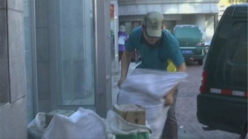 中國郵政集團公司長春市分公司 明德路營業部 主任 李波:報紙裝一袋,再加上雜志,都得超過一百斤(像這樣的,從卸車到二次分揀,再上車搬運,每個快遞員每天是不是都得背三四千斤的一個重量?)他們特班負責大戶單位,要超過這個數。