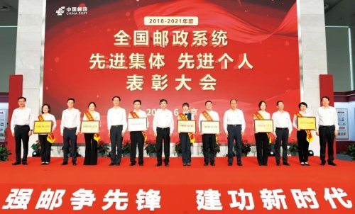 強郵爭先鋒,建功新時代。6月27日上午,2018-2021年度全國郵政系統先進集體、先進個人表彰大會隆重召開。4年一次的表彰大會,是全國郵政系統規模最大、影響最廣泛的表彰活動,本次大會對142個先進集體和203名先進個人進行隆重表彰。中國郵政集團有限公司黨組全體成員出席,黨組書記、董事長劉愛力發表講話,代表集團公司黨組向受到表彰的先進集體和先進個人致以誠摯祝賀,向長期以來奮斗在各個崗位上的廣大郵政干部職工致以親切慰問,強調要大力弘揚勞模精神、勞動精神、工匠精神,用榜樣的精神力量,激蕩起廣大郵政干部職工強郵爭先鋒的強勁音符,譜寫出廣大郵政干部職工建功新時代的華彩篇章。集團公司副總經理康寧宣讀《中國郵政集團有限公司中國郵政集團工會關于表彰2018—2021年度全國郵政系統先進集體、先進個人的決定》,副總經理王儉主持。