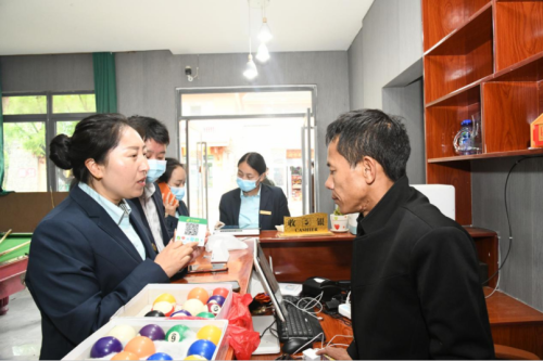 “當(dāng)然可以,我們郵政不僅有收款二維碼,還有基金、理財、保險等業(yè)務(wù)……你還可以開通手機銀行,以后訂貨轉(zhuǎn)賬很方便,也不要手續(xù)費哦。”另一邊,土比妞牛的同事馬玉蘭、魯瑜熟練地為吉覺勒果辦理掃碼支付業(yè)務(wù)。