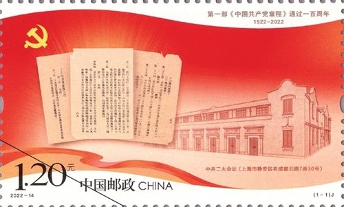 7月23日,《第一部<中國共產(chǎn)黨章程>通過一百周年》紀念郵票將發(fā)行。該套郵票一套1枚,全套面值為1.20元,計劃發(fā)行680萬套。