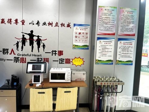 走進郵政支局“戶外勞動者驛站”,盡管地方不大,但桌椅、冰箱、空調、飲水機、微波爐、打印機、充電器、雨傘、針線包、應急藥箱......各種設施物品一應俱全。高大姐說,“驛站”里冬天有熱水,夏天有礦泉水,可以熱飯,可以充電,如果有時間,還可以看看報刊雜志,幾乎成了她和工友們的“第二個家”?!坝绕涫乾F在這么熱的天氣,郵政支局有時還會給我們準備冰棍、綠豆湯、西瓜等,消暑祛暑,很是貼心。”