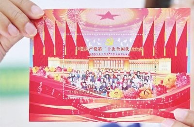 10月16日,中國郵政發行《中國共產黨第二十次全國代表大會》紀念郵票一套2枚,小型張1枚。新華社發
