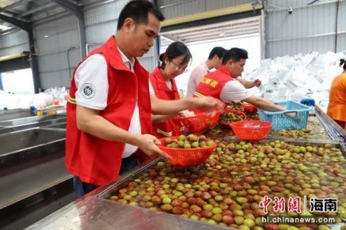 在中國郵政農品基地——海南??谌T坡荔枝基地,??谑朽]政分公司金融業務部管理員鐘昌宏介紹,因荔枝發貨量激增,??卩]政組織幫扶工作隊來荔枝打包現場支援,工作隊會對每顆荔枝進行分揀把控,確保每顆發往全國的荔枝品質。