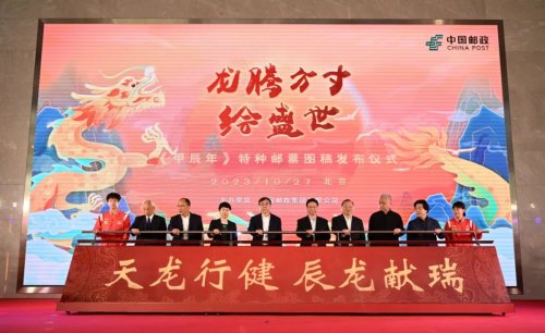 10月27日,中國(guó)郵政《甲辰年》特種郵票圖稿發(fā)布儀式在京舉行。國(guó)家郵政局副局長(zhǎng)、中華全國(guó)集郵聯(lián)合會(huì)會(huì)長(zhǎng)戴應(yīng)軍,中央港澳工作辦公室巡視員許麗,中國(guó)郵政集團(tuán)有限公司黨組書(shū)記、董事長(zhǎng)劉愛(ài)力,黨組副書(shū)記、總經(jīng)理鄭國(guó)雨,黨組成員、副總經(jīng)理康寧,觀復(fù)博物館創(chuàng)辦人、著名文化學(xué)者馬未都,中國(guó)社科院榮譽(yù)學(xué)部委員、民俗學(xué)會(huì)名譽(yù)會(huì)長(zhǎng)劉魁立,中國(guó)國(guó)家乒乓球隊(duì)運(yùn)動(dòng)員林高遠(yuǎn)、于子洋、陳幸同、錢天一等出席活動(dòng)。發(fā)布儀式上公布了《甲辰年》特種郵票圖稿并同步啟動(dòng)郵票印制。